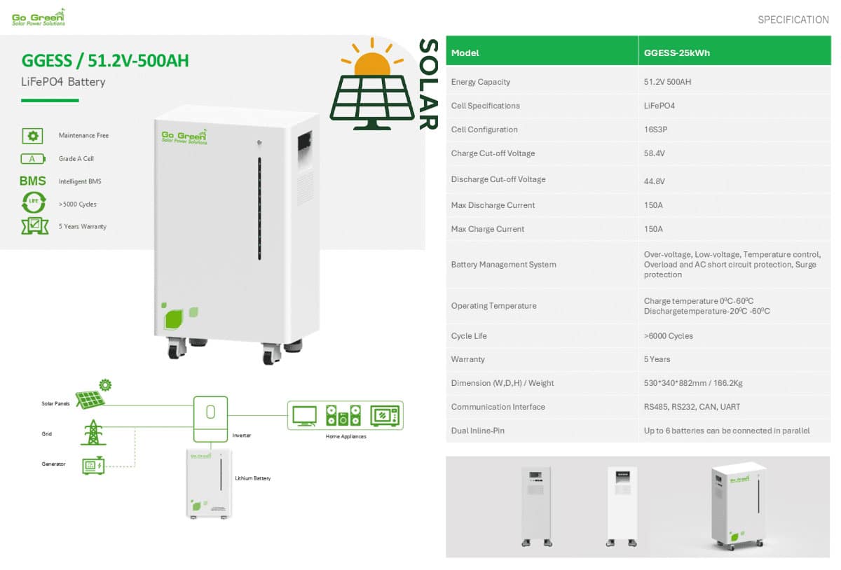 باتری لیتیومی 500 آمپر ساعت 51.2 ولت برند Go Green مدل GGESS-25kWh