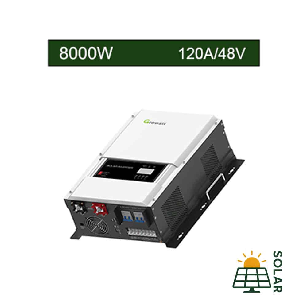 سانورتر 8 کیلووات، 48 ولت، 120 آمپر MPPT برند Growatt مدل Growatt SPF 8000T HVM یکی از سانورترهای تمام سینوسی برند Growatt می باشد.